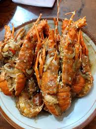Makan Tenghari di Pantai Timang. Makan Baby Lobster. Segar manis. Nak masakan pedas atau 3 rasa? Nak bawa balik pun bolih!.
