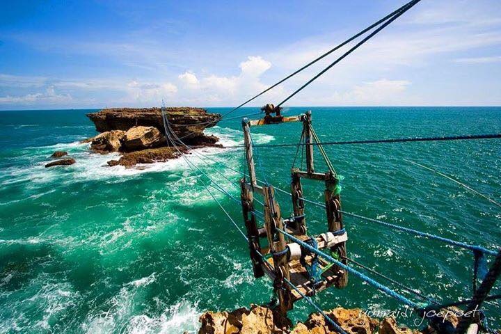 Lawatan ke Pantai Timang Cabaran untuk menyeberang ke pulau kecil dengan gondala. Bolih cuba